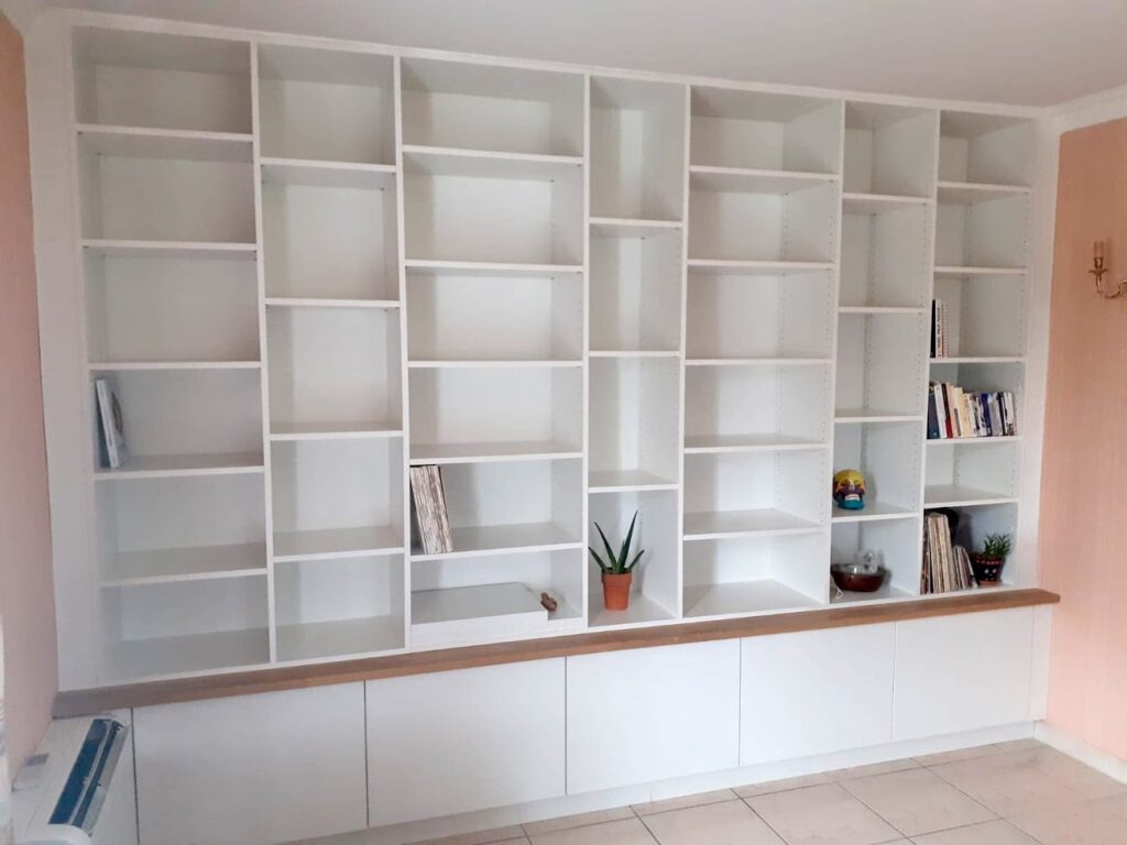 fabrication et pose d’une bibliotheque sur mesure moderne en correze